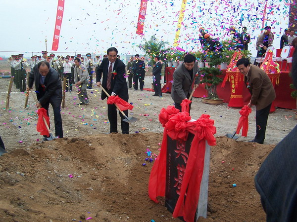 2005年10月12日上午10:18,在中日合资山东杰富意振兴化工有限公司30万吨/年煤焦油深加工项目施工现场,彩旗猎猎,礼炮齐鸣,规模盛大的开工奠基仪式隆重举行。中共潍坊市委副书记赵兴涛、日本JFE钢铁集团副社长石川良雄、潍坊市人大常委会副主任王永兴、潍坊市人民政府副市长辛丕宏、化工部第二设计院院长邓宝林、昌乐县县委书记花兆贤、昌乐县县长王立胜、焦化公司董事长夏云国、总经理周兴华、合资公司董事会成员以及市直、县直有关部门和兄弟单位的领导出席了开工奠基仪式。( )