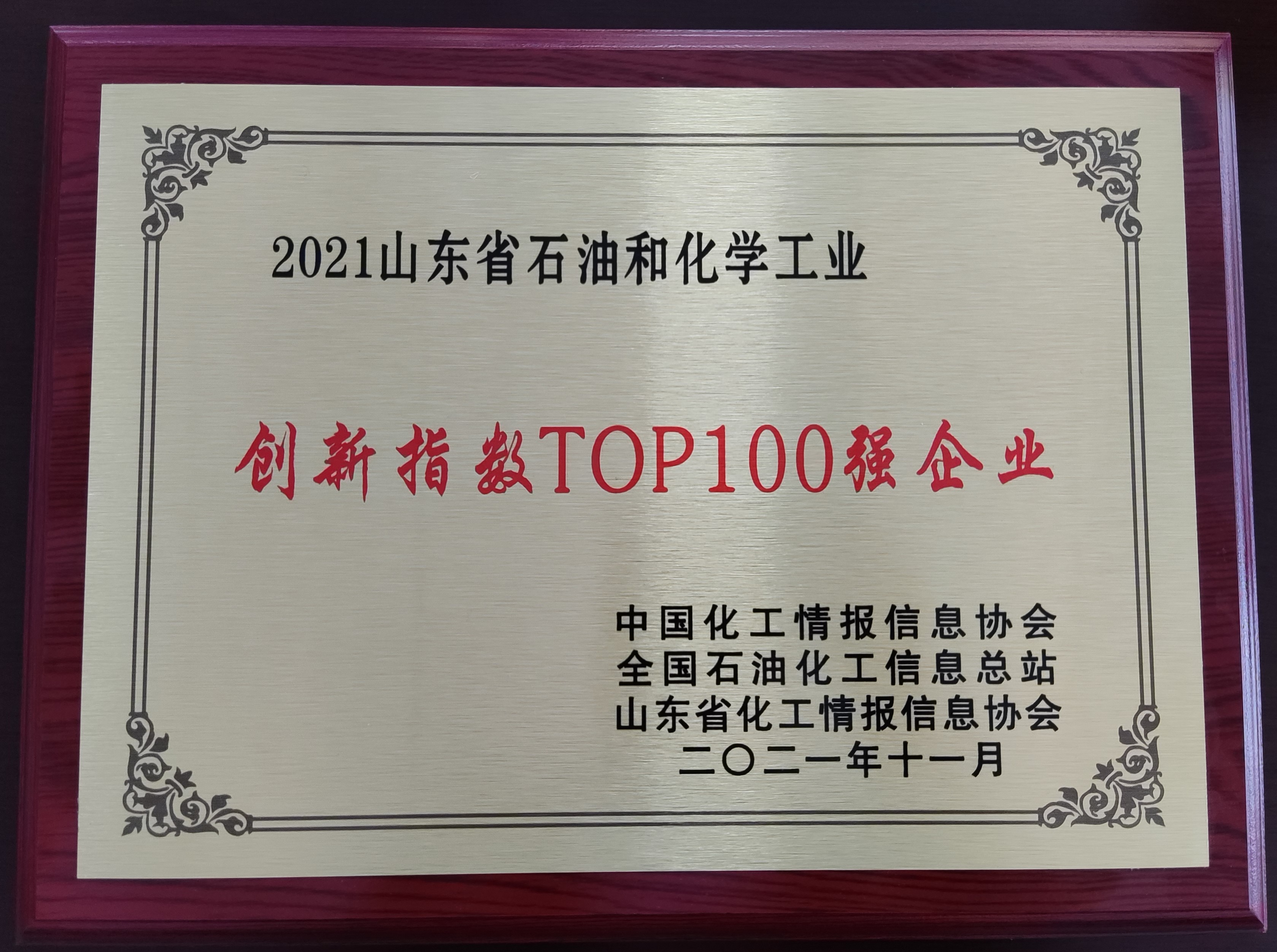 集团公司荣获“2021山东省石油和化学工业创新指数top100企业”称号
