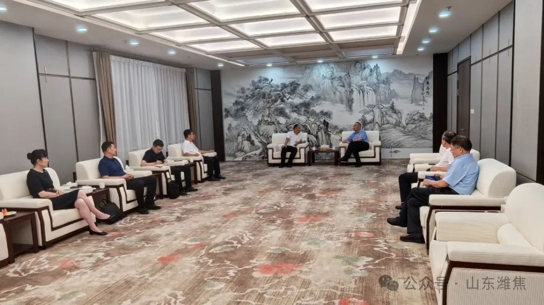 7月21日下午,潍坊市副市长马勇、潍坊市工信局党组书记、局长董胜勇一行到集团公司调研,董事长刘良玉、总经理王读福、副总经理吕红热情接待。