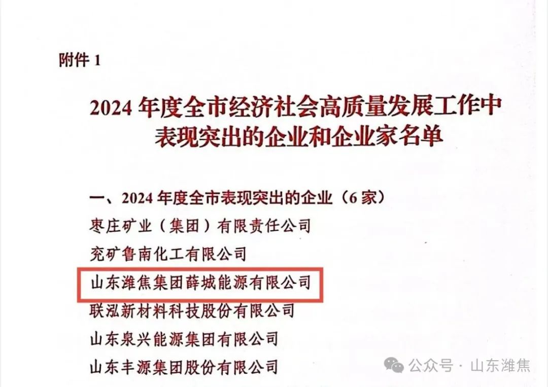 薛城能源公司荣获“高质量发展工作突出企业”荣誉称号